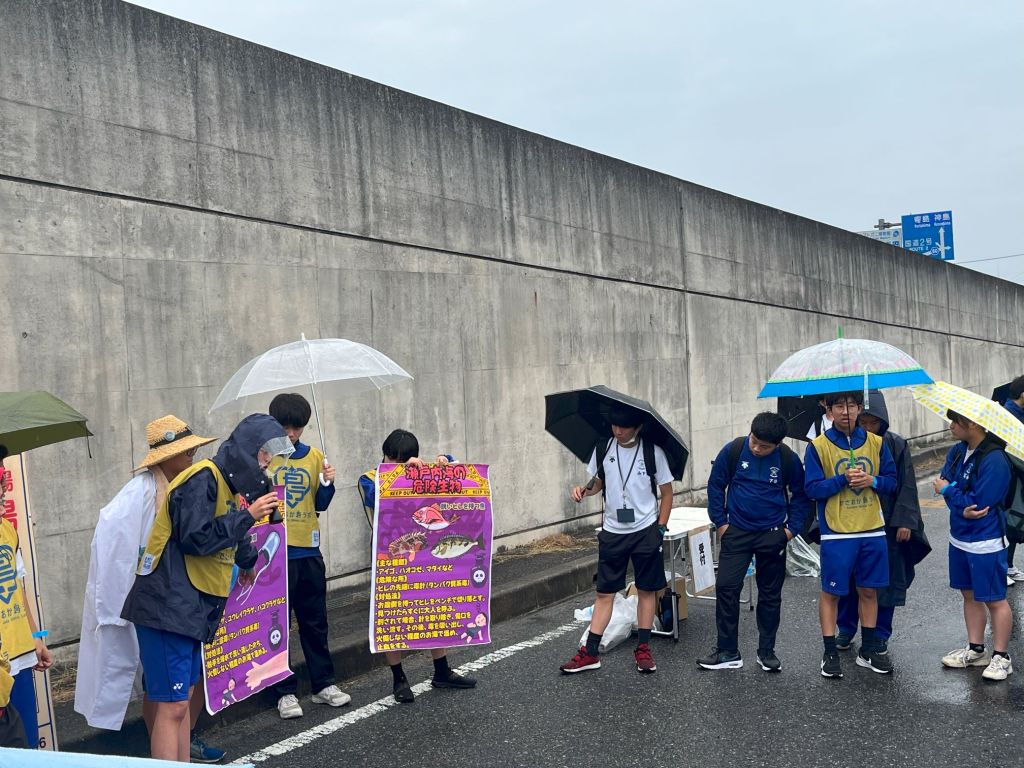 10月19日 近大広島高中福山校科学部による「白石島里海遠足2024」が行われました。当日は、あいにくの雨模様でしたが、地引網では鯛が豊漁で、おかわりカレーのサバイバルじゃんけんもあり、大変盛況でした。