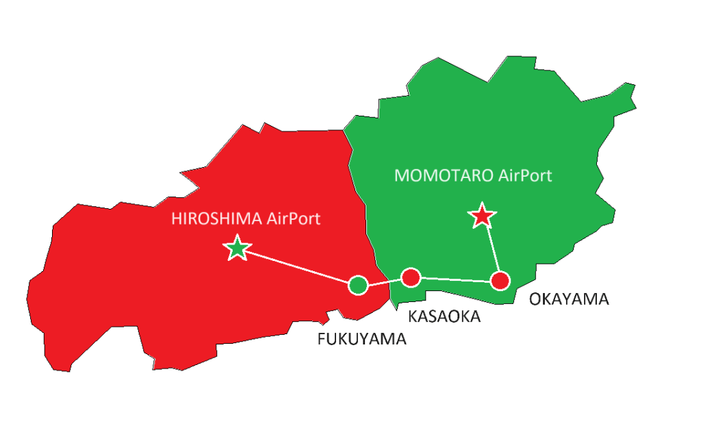 笠岡へのアクセスは岡山桃太郎空港、または、広島空港が便利です。